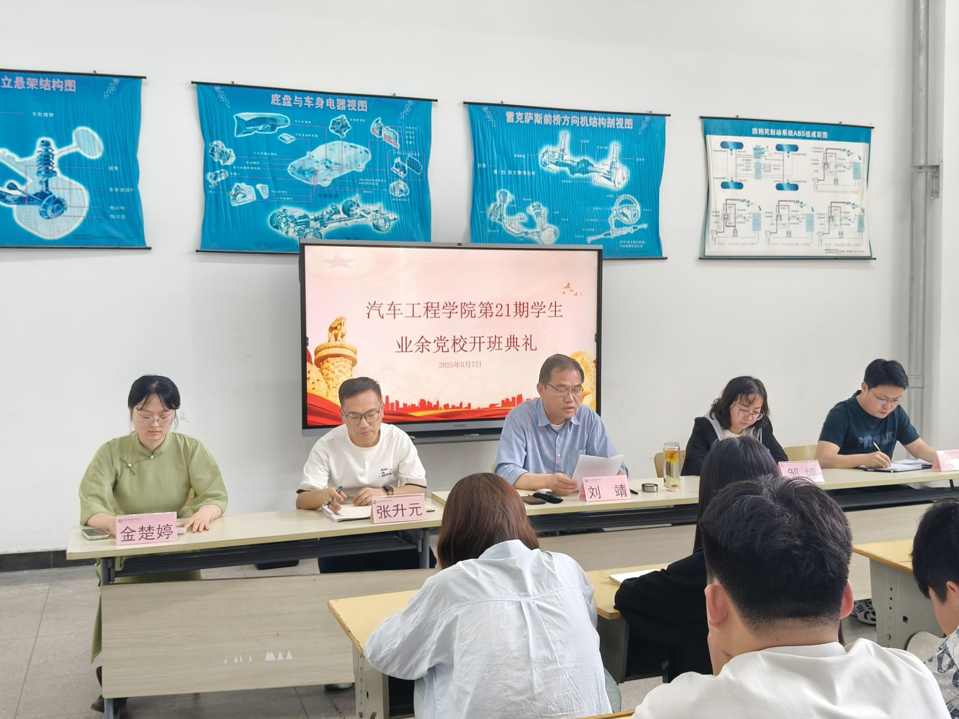 为深入学习贯彻习近平新时代中国特色社会主义思想和党的二十大精神,加强青年学生思想政治引领,5月7日下午2点,永利集团304am登录在汽车楼二楼学生活动室举行第21期学生业余党校开班典礼,我院党总支书记副书记刘靖(负责工作)、党总支副书记邹坤、第五支部书记张升元、第六支部书记毛炜、专职组织员金楚婷及69名入党积极分子参会,会议由金楚婷主持。