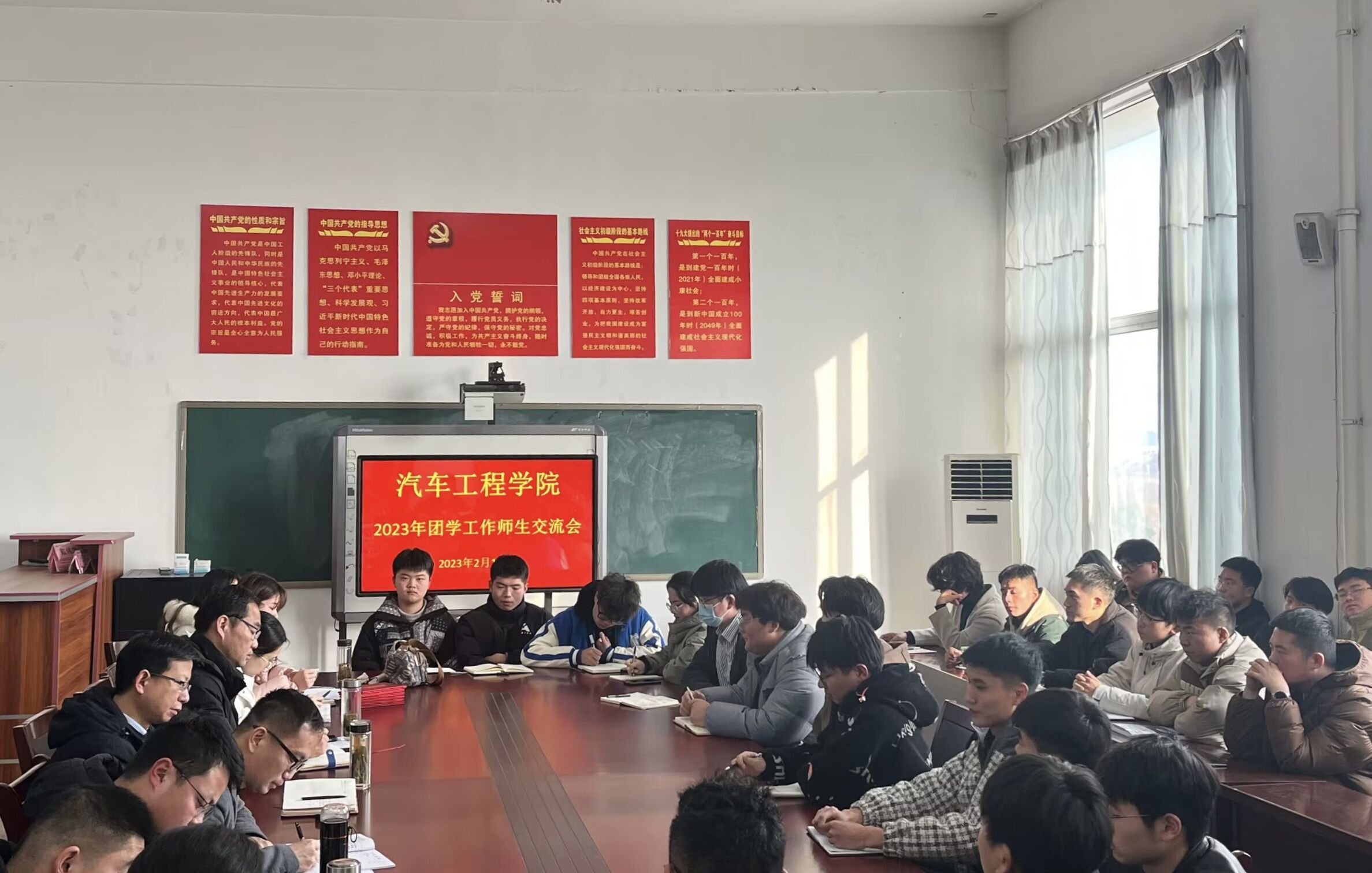 2月15日下午3:00,永利集团304am登录开展了2023年第一次团学工作师生交流会,会议由该院学管办主任张升元主持,学校党委委员、办公室主任、学院党总支书记王海,院党总支副书记刘靖,院团总支书记毛炜,全体专职辅导员,学生会主要干部和在校班级班长参加了此次会议。