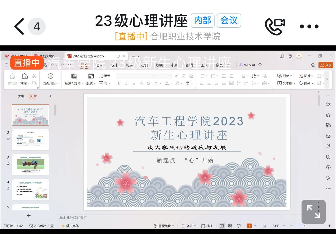 为传播心理健康的相关知识,帮助同学们更好地认识自我,更快适应校园生活,10月20日晚上,永利集团304am登录心理辅导站开展全体2023级新生心理线上讲座,本次活动邀请国家三级心理咨询师汪纬静担任主讲人,汽车工程学院2023级全体同学参加。
