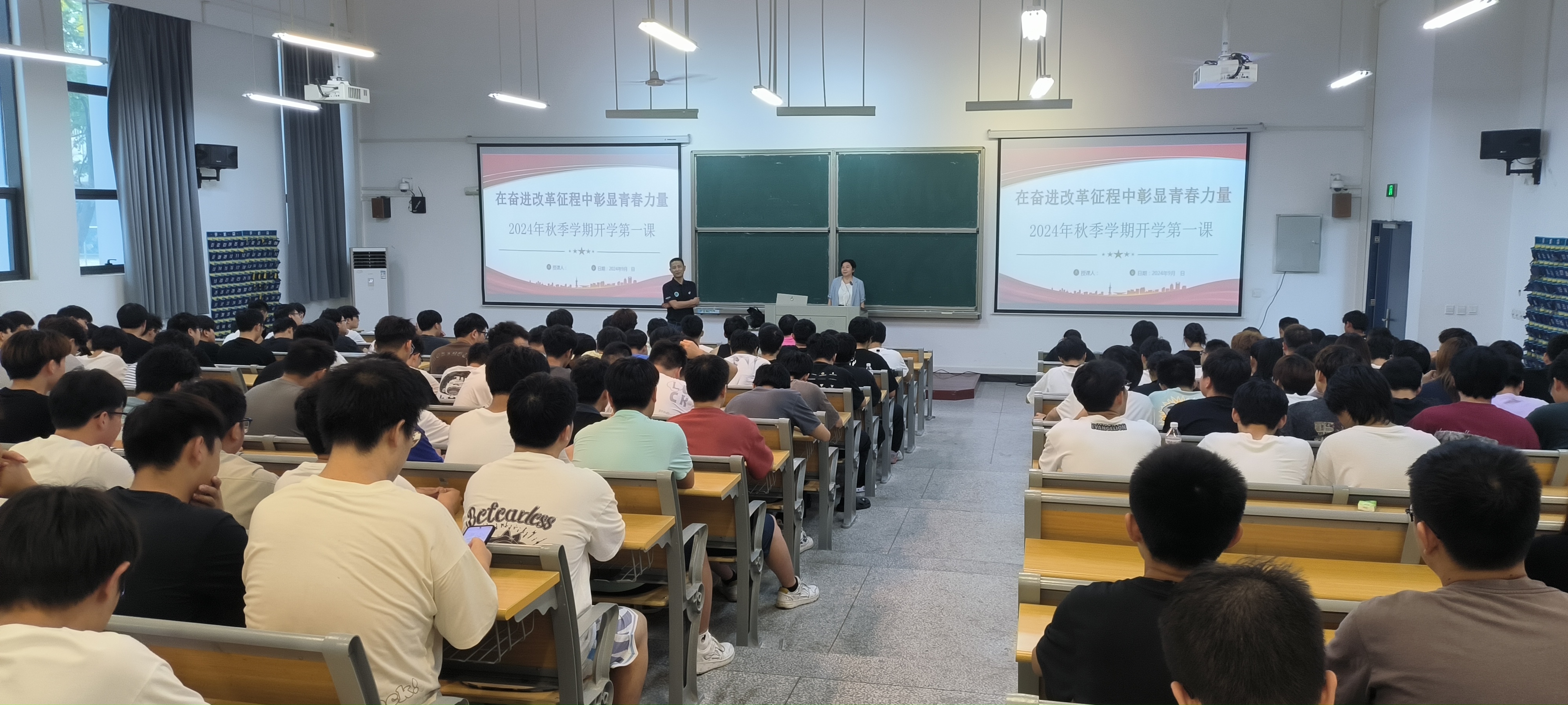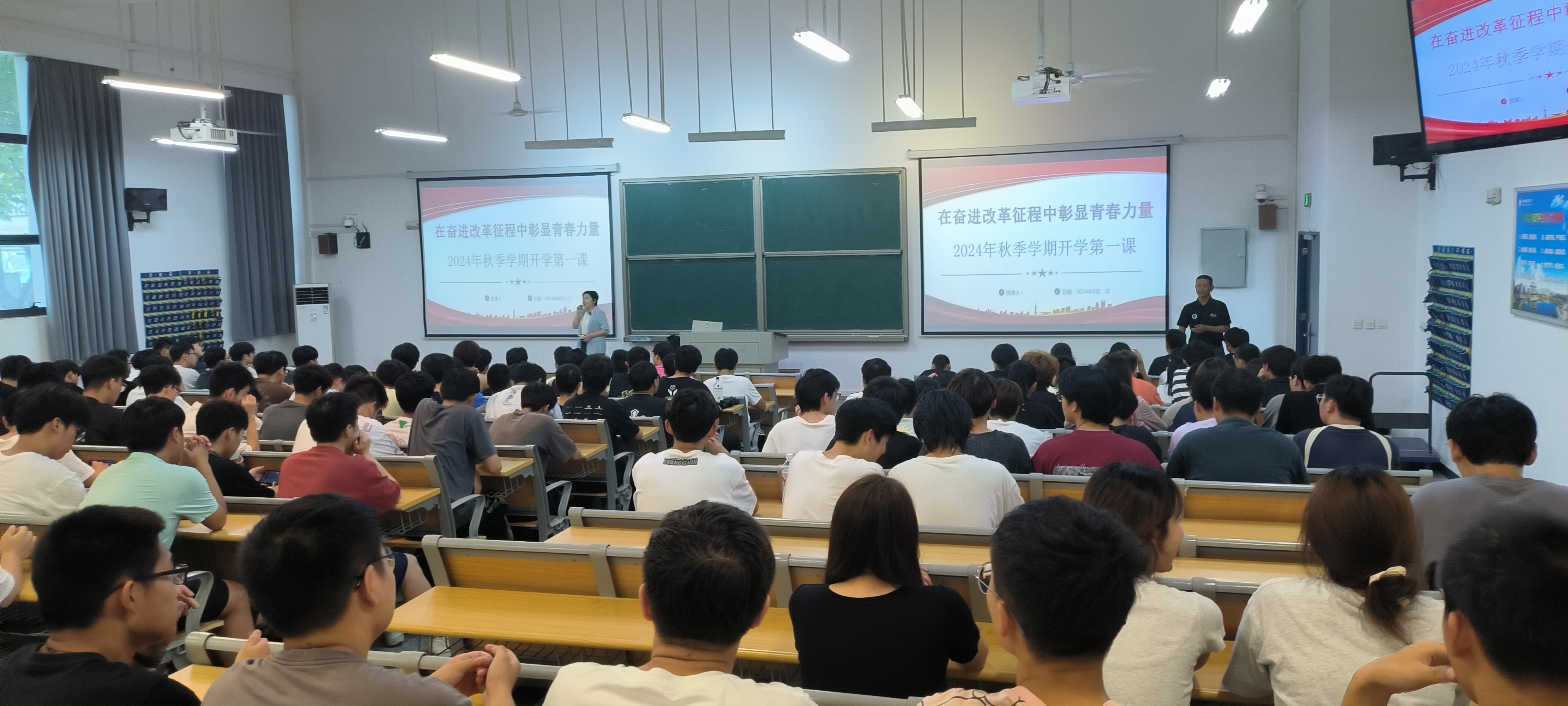 9月11号下午两点半,校宣传部部长魏华在汇心湖校区北教101为永利集团304am登录学生开展了以“在奋进改革征程中彰显青春力量”为主题的开学第一课讲座,永利集团304am登录汇心湖校区全体学生聆听了讲座。