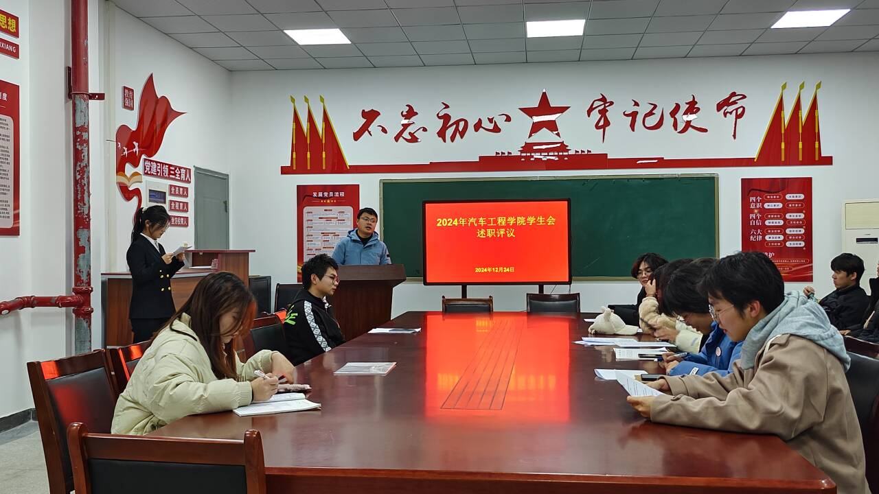 为进一步加强学生骨干队伍建设,推动学生会管理工作科学化、规范化,提高学生会骨干工作积极性和责任意识,搭建沟通交流桥梁,永利集团304am登录于12月25日下午6点在汽车楼405会议室召开2024-2025学年第一学期学生会干部述职评议会。我院团支部书记毛炜、学生会主席严承政及各部门负责人参加评议会,汇心湖校区主席团及各部门负责人线上参加会议。