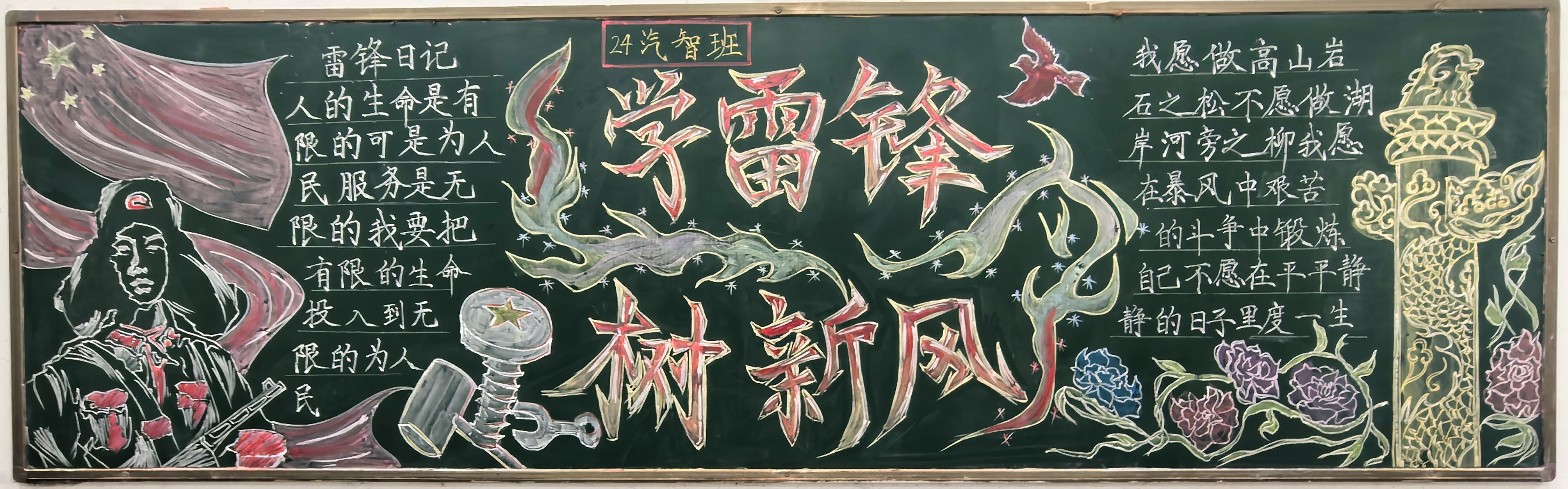 3月4日至14日,该院组织开展了“传承雷锋精神,绽放青春光彩”主题黑板报创作评比活动。经过为期一周的评审与展示,活动于近日圆满落幕,其中,24新能源1班获得一等奖;24汽智班、24新能源3班获得二等奖;24汽制1班、24新能源汽检1班、24新能源2班获得三等奖。“雷锋精神是永不褪色的精神坐标,此次评比活动让雷锋精神的种子在校园生根发芽,为培育新时代有为青年注入精神动力。
