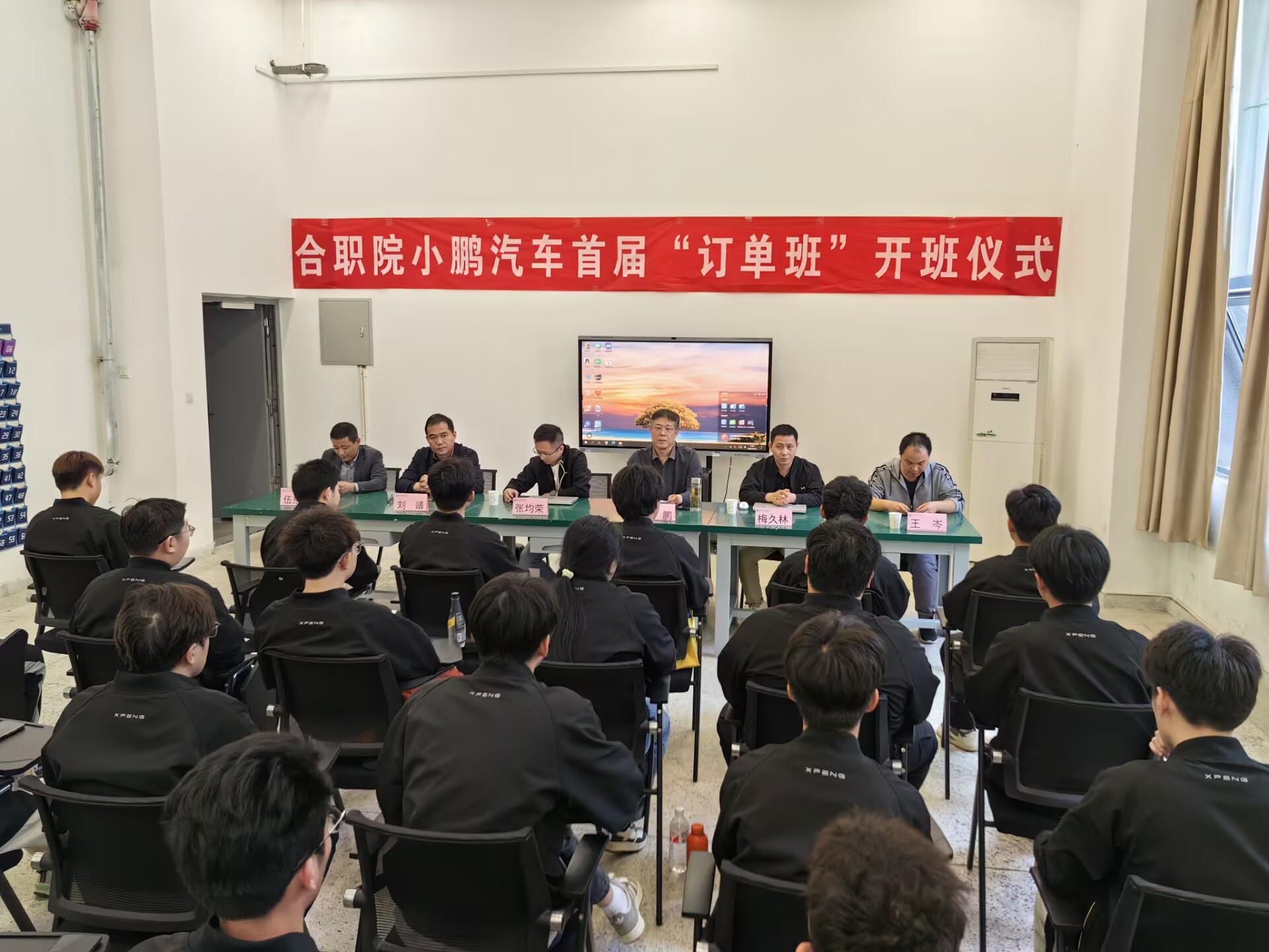 我院新能源教研室主任介绍了与小鹏汽车的合作情况,以及第一期订单班的组建情况。订单班学生代表姚兆炎在发言中表达了对学校和企业提供机会的感谢,并表示将以饱满的热情和积极的态度投入到学习中,努力掌握专业知识和技能,不辜负学校和企业的期望。