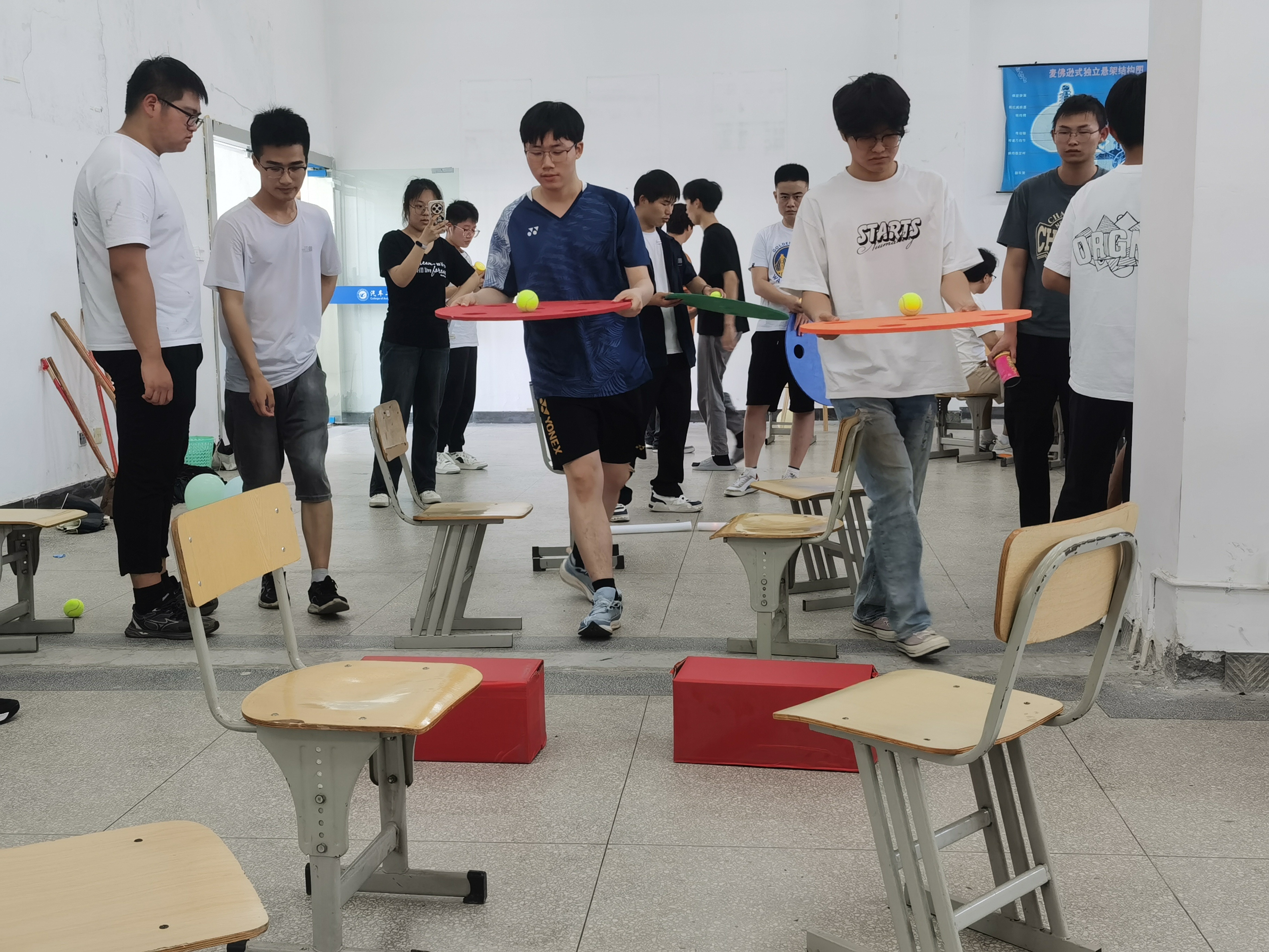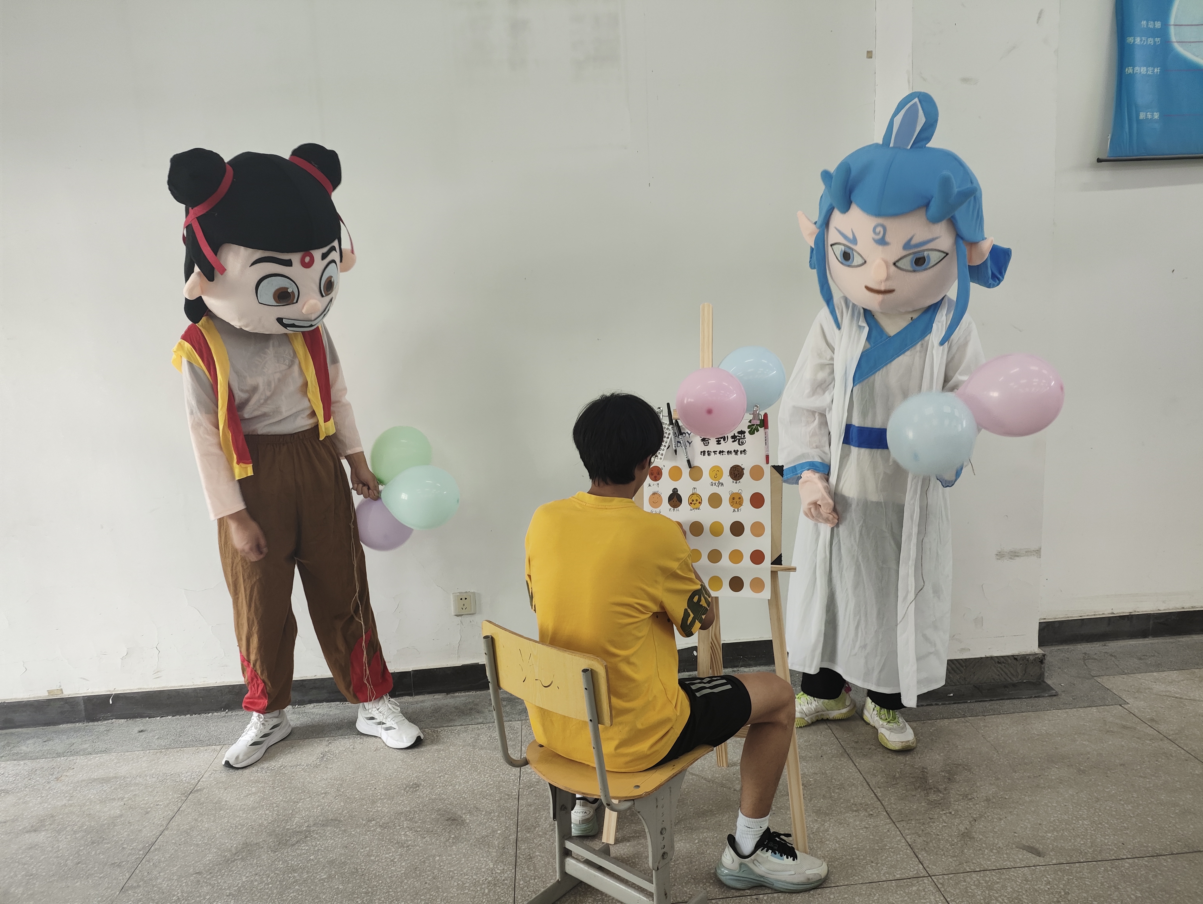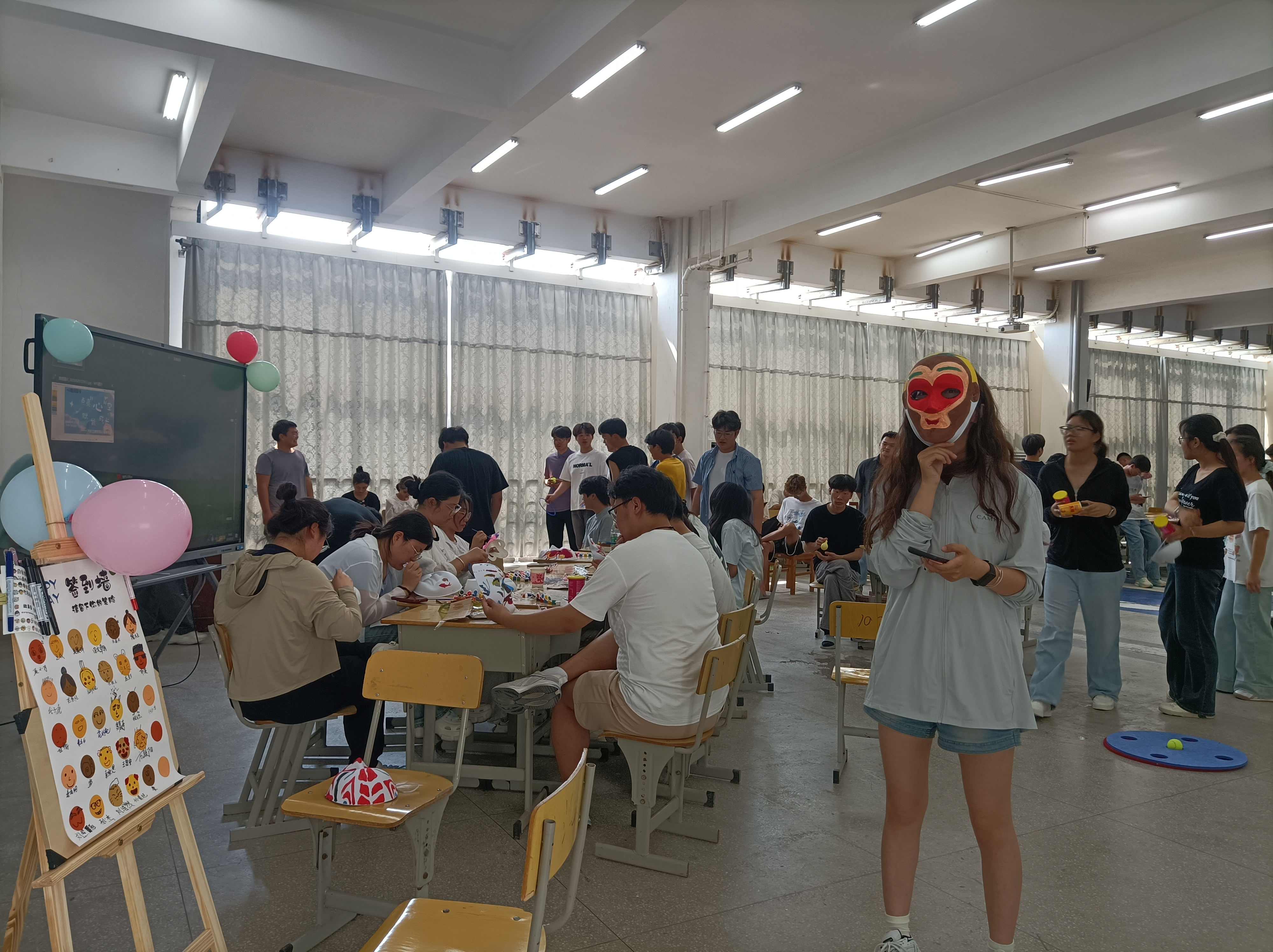 活动现场,多个精心设计的游戏环节精彩纷呈。在“笑脸墙”区域,同学们纷纷留下灿烂笑容的照片,一张张笑脸不仅展现了大家的青春活力,更传递出积极乐观的心态,成为活动现场一道亮丽的风景线。“吹走压力球”游戏中,同学们鼓足气吹动小球,将生活与学习中的压力随气流一同释放,在欢声笑语中放松身心。“情绪面具DIY”最受同学们欢迎,大家充分发挥创意,用画笔在面具上描绘出内心的情绪世界,将无形的情绪转化为色彩斑斓的艺术作品,在创作过程中加深了对自我情绪的认知与接纳。“四平八稳”游戏考验着同学们的耐心与专注力,大家在保持平衡的过程中锻炼了心理素质,学会了沉稳应对挑战。而“压力气球爆破”环节更是将活动推向高潮,同学们用力踩破气球,随着一声声清脆的爆破声,压力也随之烟消云散。