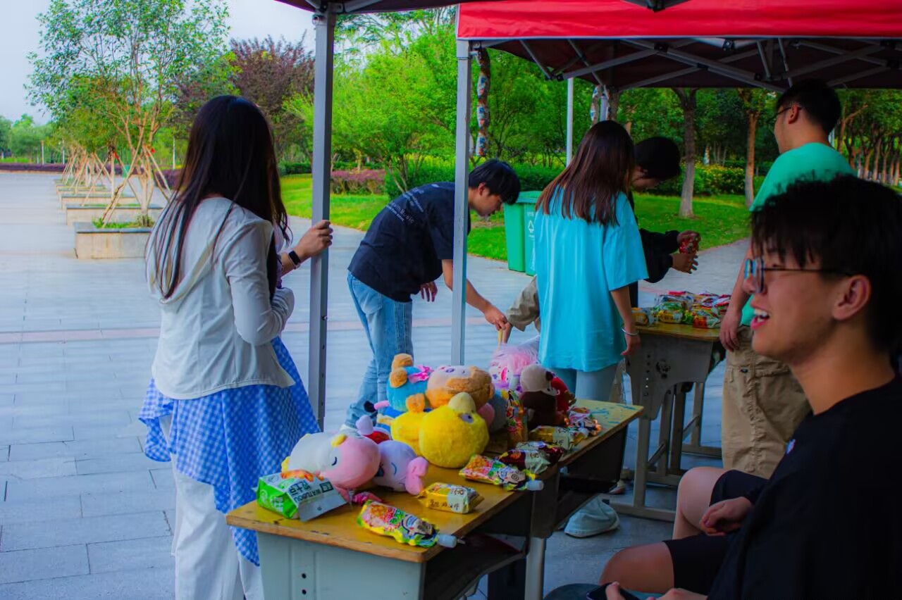 “听歌识曲”区则洋溢着青春气息,《孤勇者》《晴天》等热门曲目刚响起考验着同学们的音乐储备量。每当熟悉的旋律响起,现场便迅速热闹起来,同学们积极抢答,争分夺秒地报出歌曲名称和演唱者。活动还为参与者们设置了许多零食和毛绒玩偶作为奖品,参与者们收获满满。