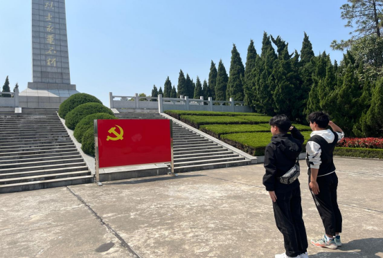 丰碑常在,英雄永存。师生们步行来到南山烈士陵园前聆听烈士英勇事迹,为烈士深切默哀,在庄严肃穆的烈士纪念碑前,举行了简短的祭扫仪式。烈士纪念碑前同学们庄严宣誓,作为新时代的青年,作为无数革命先烈的后继者,要直面挫折与磨难,努力学习,报效祖国。两位学生代表向纪念碑敬献了鲜花,以表达对革命先烈深切哀悼和无尽的敬仰之情。