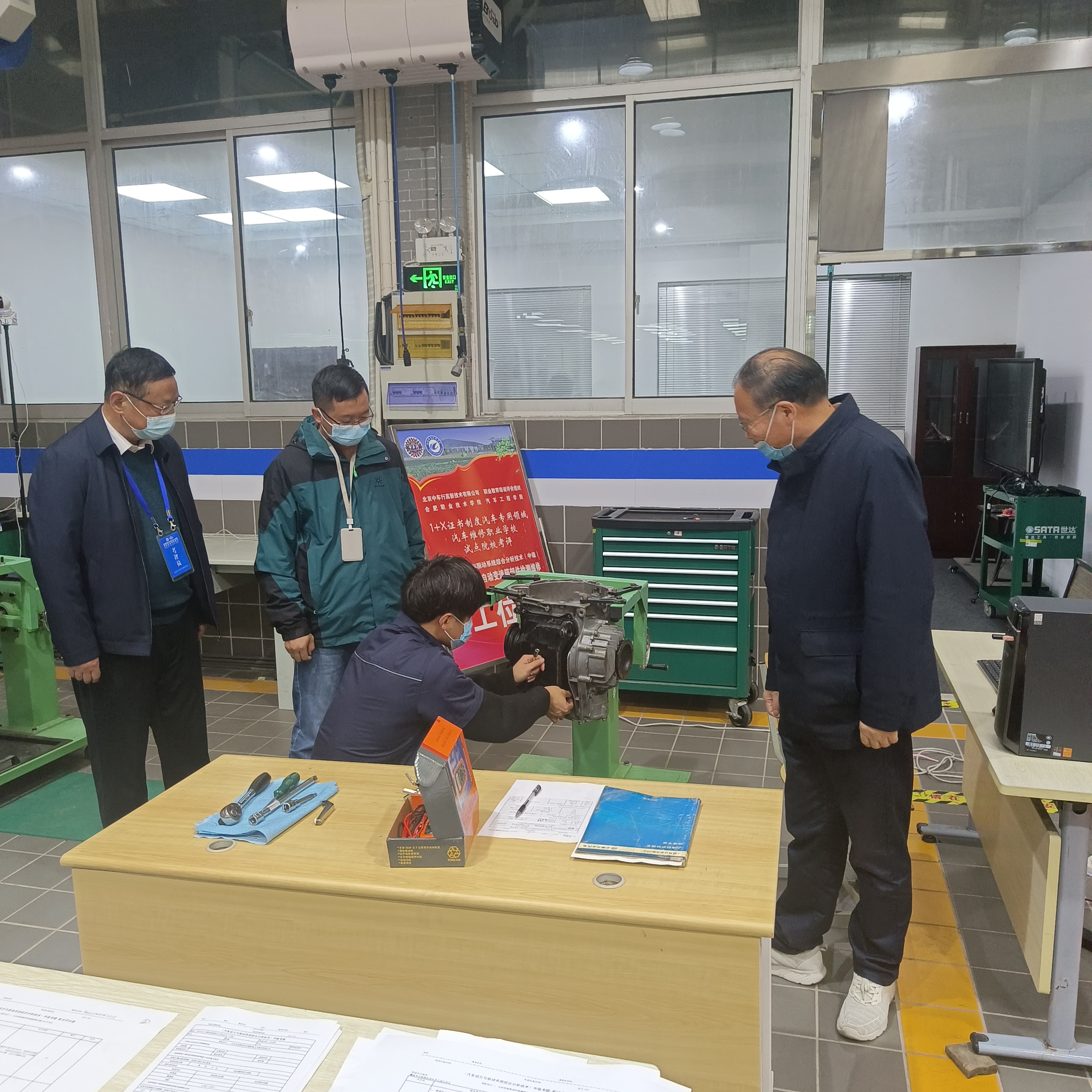 此次考试共分动力系统部件检测与维修、自动变速箱部件检测维修、传动与分动部件检测维修、动力与驱动系统性能检测四个模块。为圆满完成考试任务,我院进行了周密的部署和准备工作。一是重构体系,制定专业课程“课证融通”方案,注重实践技能培养;二是提升师资,安排专业教师开启“1+X”课程培训,对考核教师进行专项培训认证,充分研究分析考试标准和方案;三是科学谋划,制定了详细的考试培训计划,组织学生进行考试专项集训,确保考核取得实效;四是认真组织,与继续教育学院等紧密配合,在北京中车行高新技术有限公司精心指导下,在安徽省“1+X”汽车领域办公室的组织和支持下,严格按照认证流程组织考证,确保考试圆满成功。