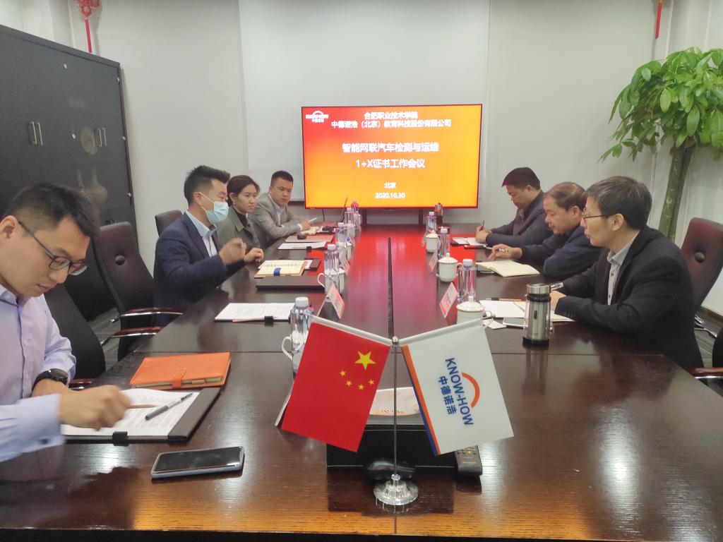 10月29-30日,永利集团304am登录院长解云、实践教学负责人张志刚、智能网联汽车检测与运维“1+X”证书安徽省牵头校负责人童晓红等一行3人赴中德诺浩(北京)教育科技股份有限公司参加省级牵头校工作会议,并对汽车智能技术专业建设进行了调研。