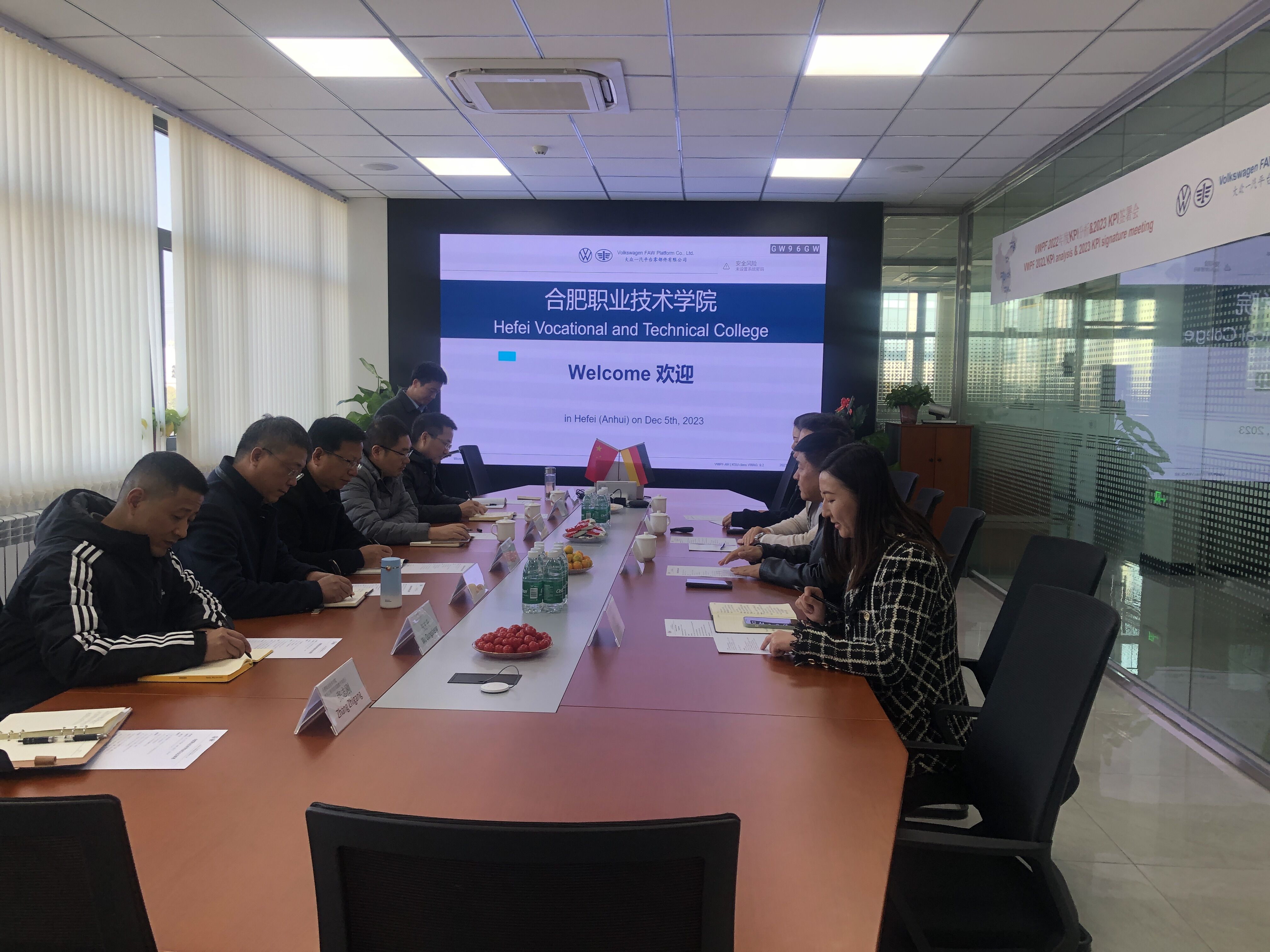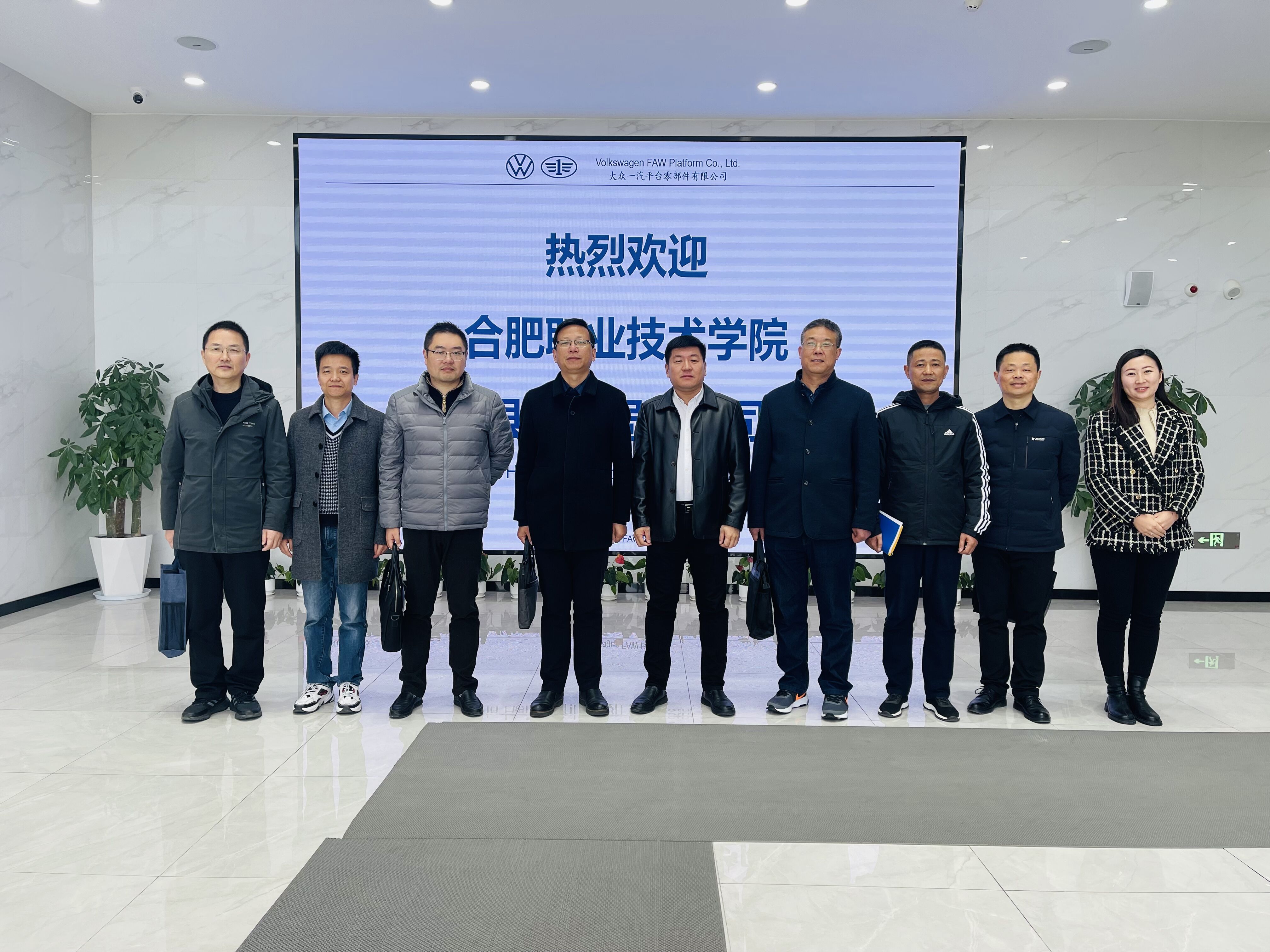 大众一汽平台零部件(安徽)有限公司主营电动汽车底盘总成生产,具备年产20余万辆电动汽车底盘总成规模。交流会上,公司外企厂长首先介绍了公司的发展历史、主营产品、在合肥投资布局现状以及未来规划发展;公司中方厂长对公司目前所需的业务岗位、人才需求标准、公司内部对员工培训体系、员工晋升通道、福利待遇、近两年岗位需求量等进行了具体介绍,希望与我校开展深度校企合作,共建“实习实训基地”。