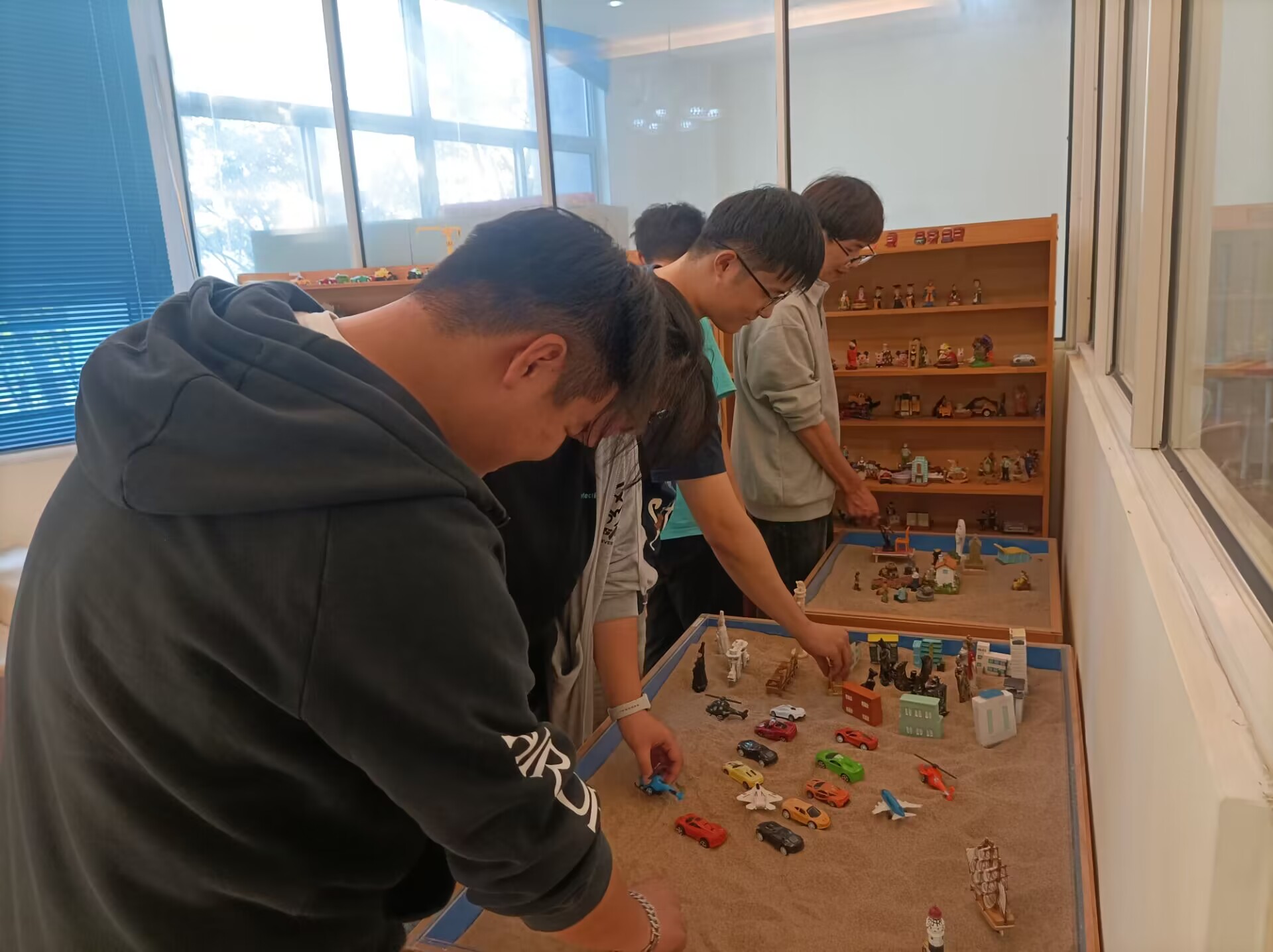 活动分为不倒森林、沙盘游戏和珠行万里三个部分。在不倒森林环节同学们按照指令,找到相应的人数组队,帮助同学们打破人际壁垒,拉近同学之间距离,打破了尴尬紧张局面,营造了轻松愉悦的团体环境。在“沙盘游戏”与“珠行万里”活动中,同学们积极参与,表达自我,展现自我,活动现场气氛融洽,学生热情高涨,和谐的画面与一张张笑脸显得格外融洽。