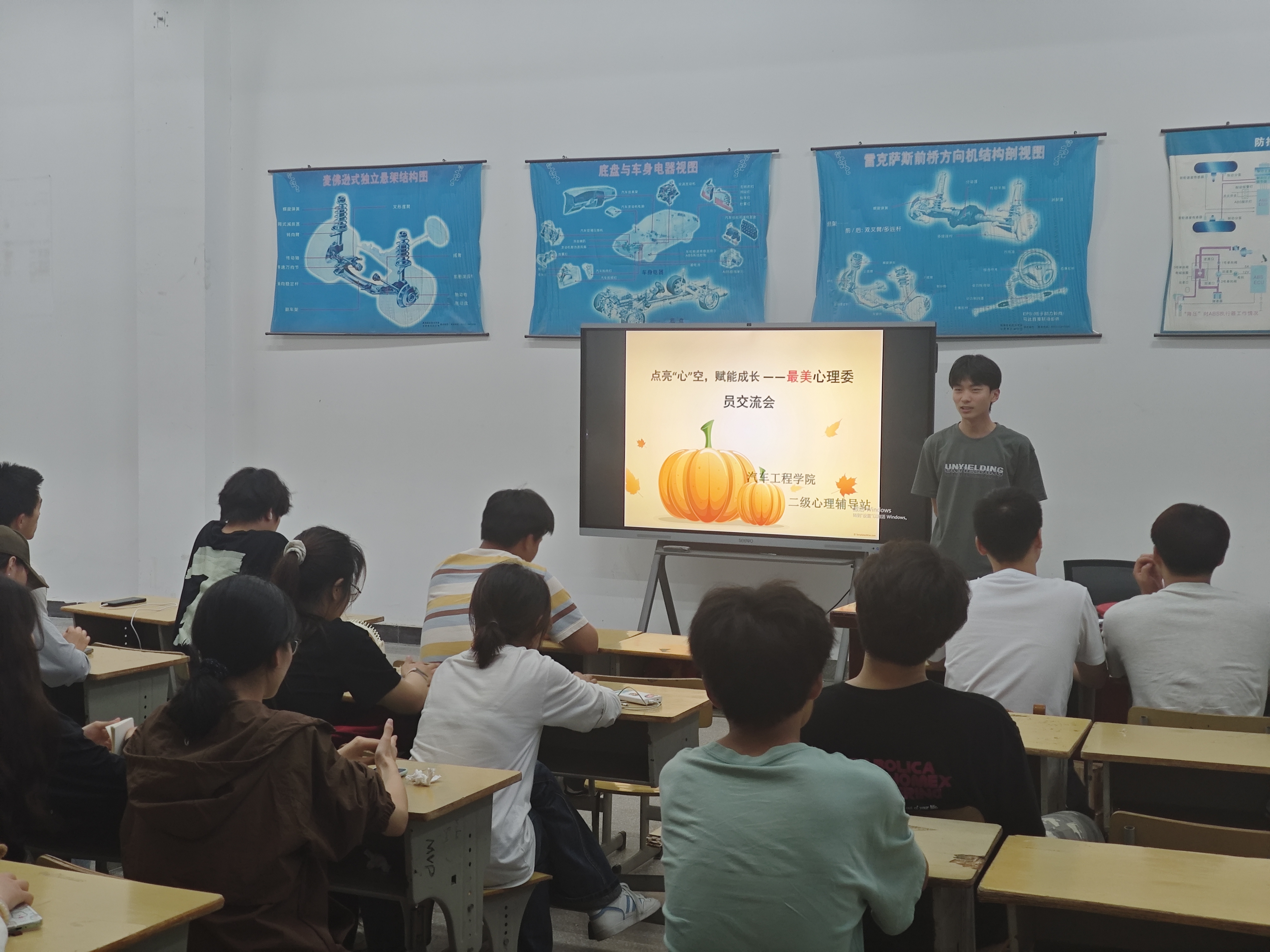 为加强校园心理健康教育工作,提升心理委员的专业素养与服务能力,汽车工程学院5月20日晚在汽车楼212活动室举办举办2025年度最美心理委员经验分享会。本次活动以“倾听•互助•成长”为主题,吸引了全院30余名班级心理委员及心理健康爱好者参与,现场气氛热烈,反响积极。
